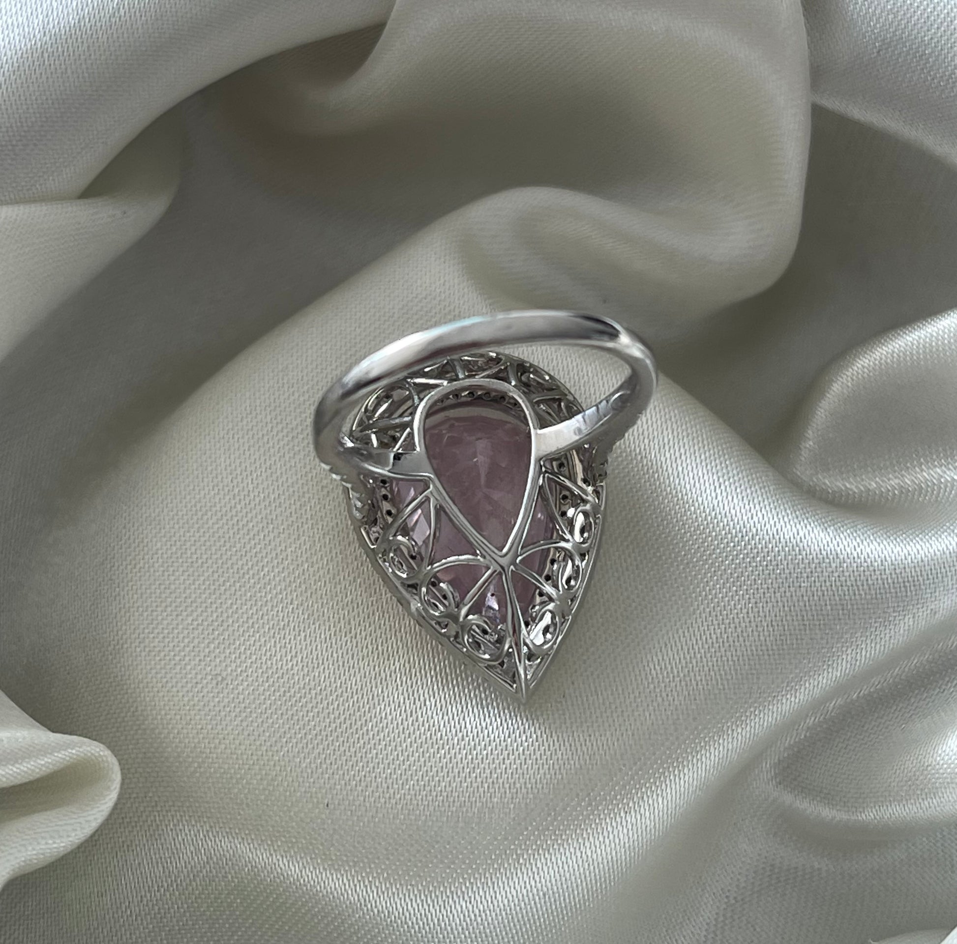 14ct white gold natural pear shaped Kunzite diamond halo ring