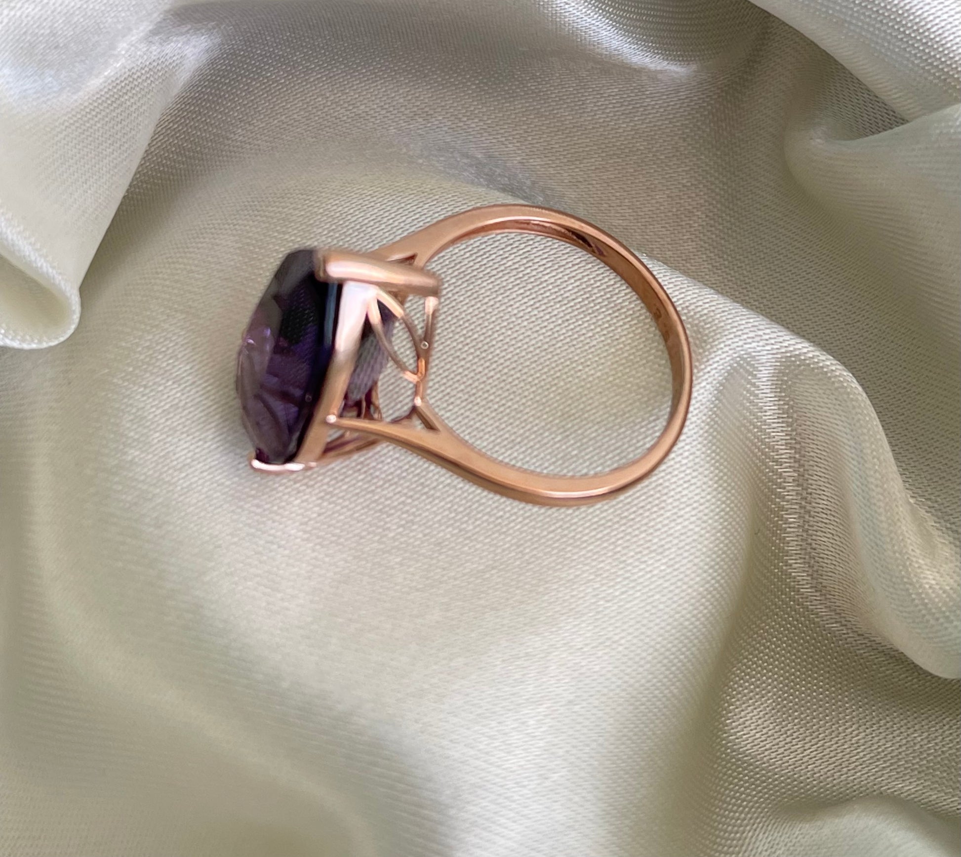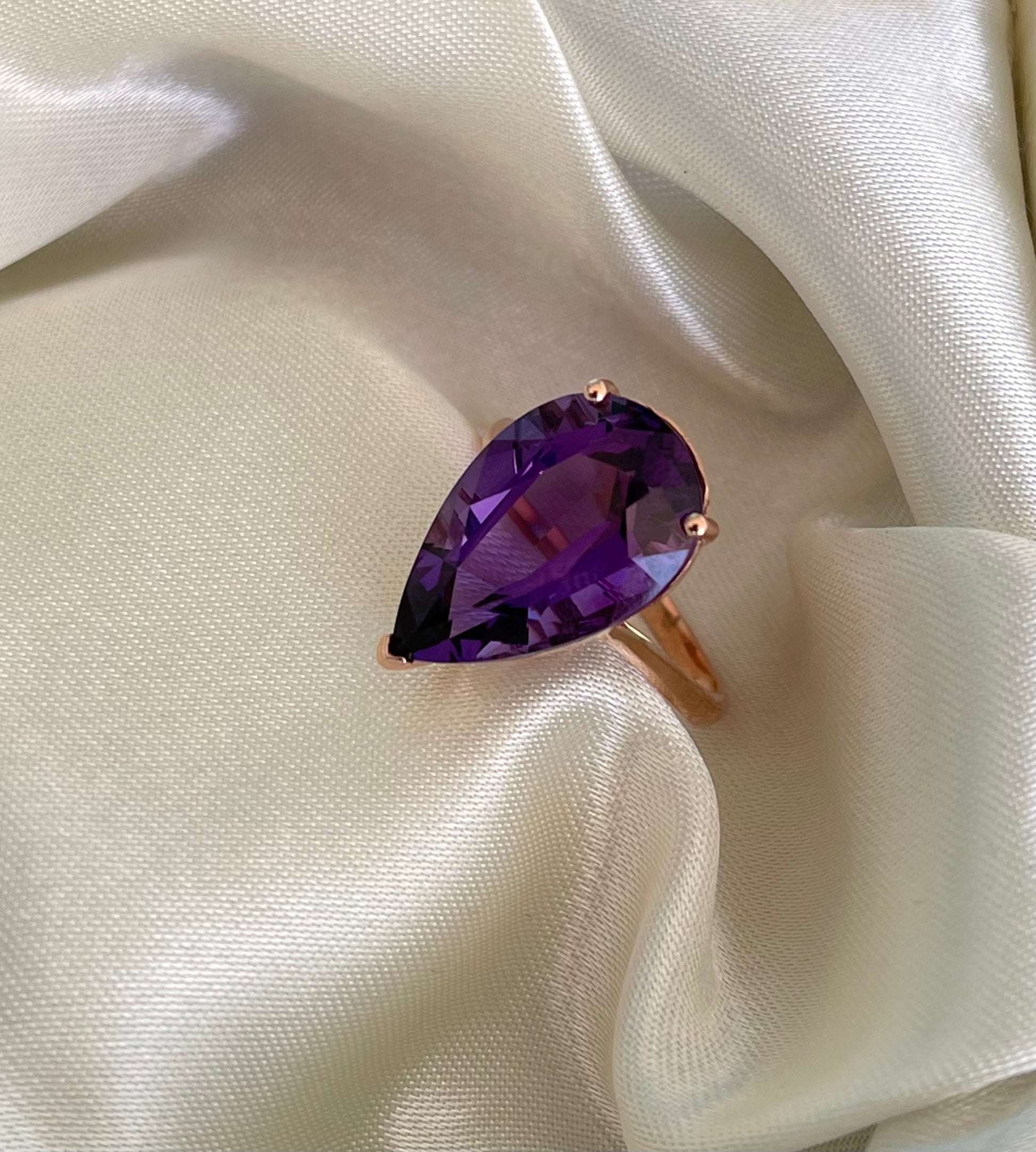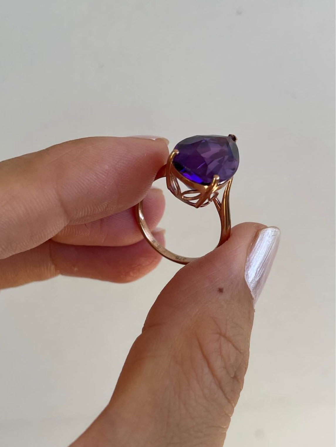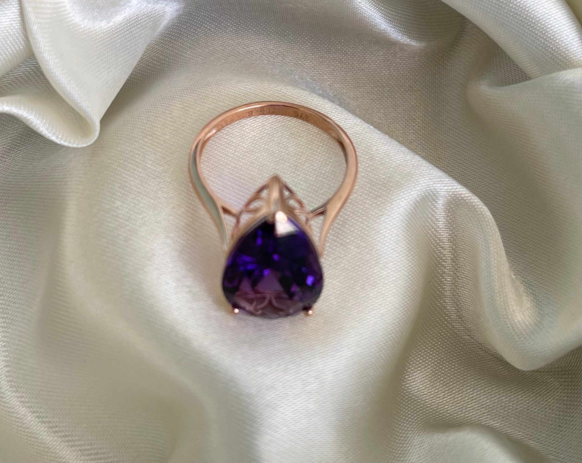 9ct rose gold pear shape 7.8ct natural deep purple amethyst ring