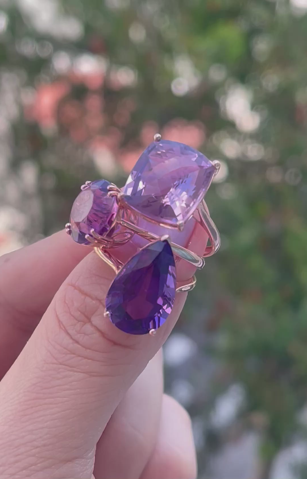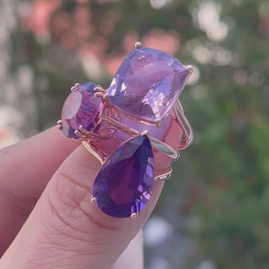 A ring that captures twilight in its heart — the deep violet glow of an evening sky meeting the warmth of rose gold. Elegant, mysterious, and timeless, this amethyst ring isn't just jewelry - it's a feeling.