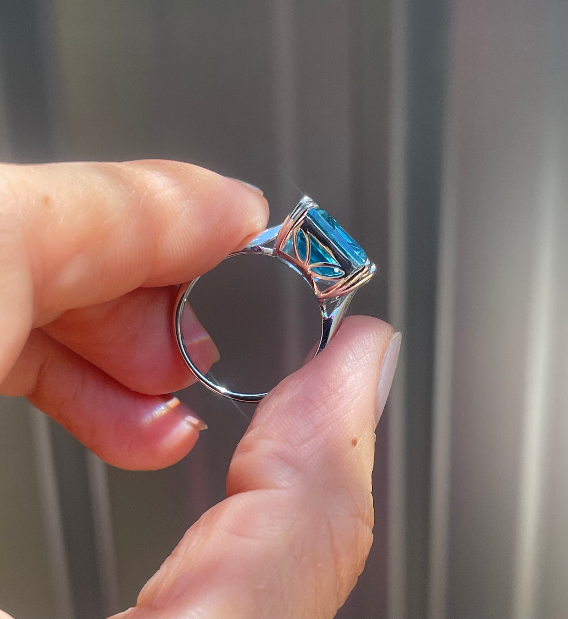 This 9ct white gold ring with a brilliant blue topaz radiates elegance, peace, and strength.