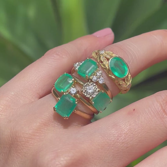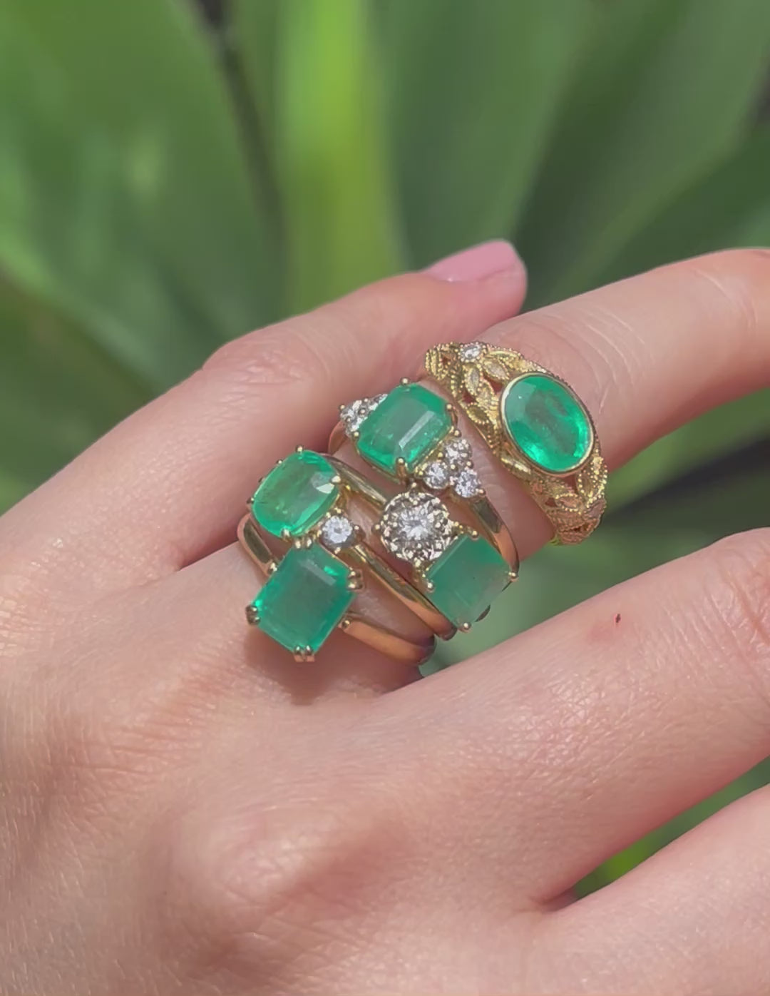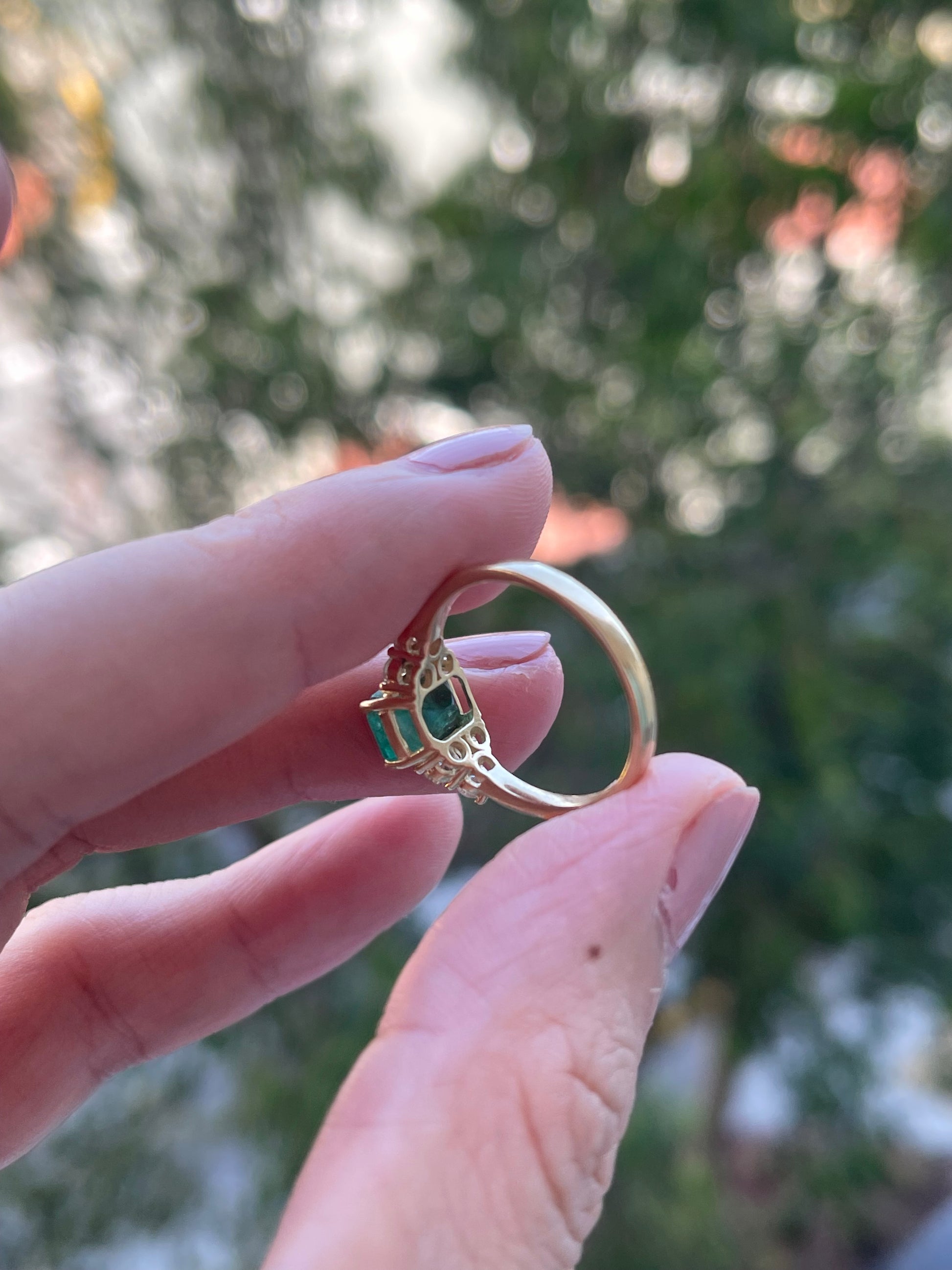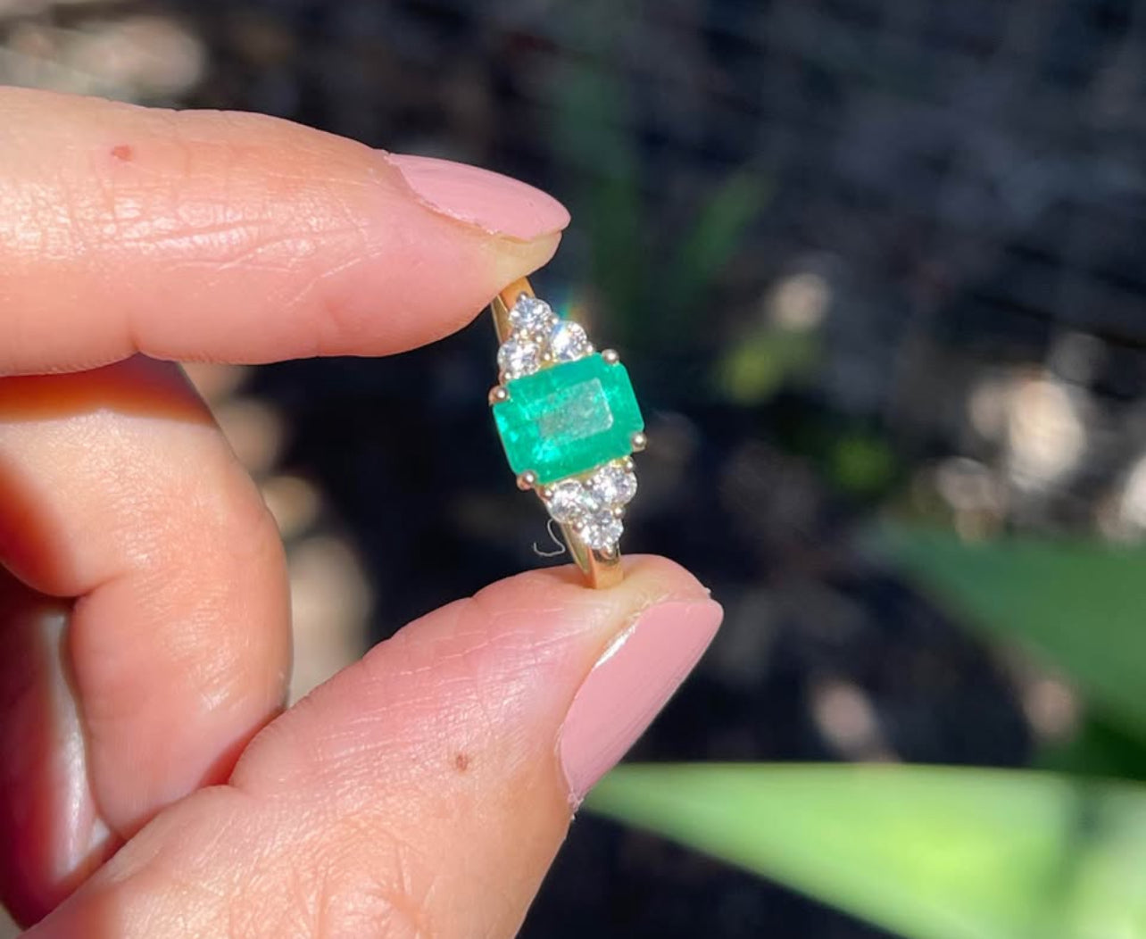 9ct yellow gold 1.75ct natural emerald diamond ring