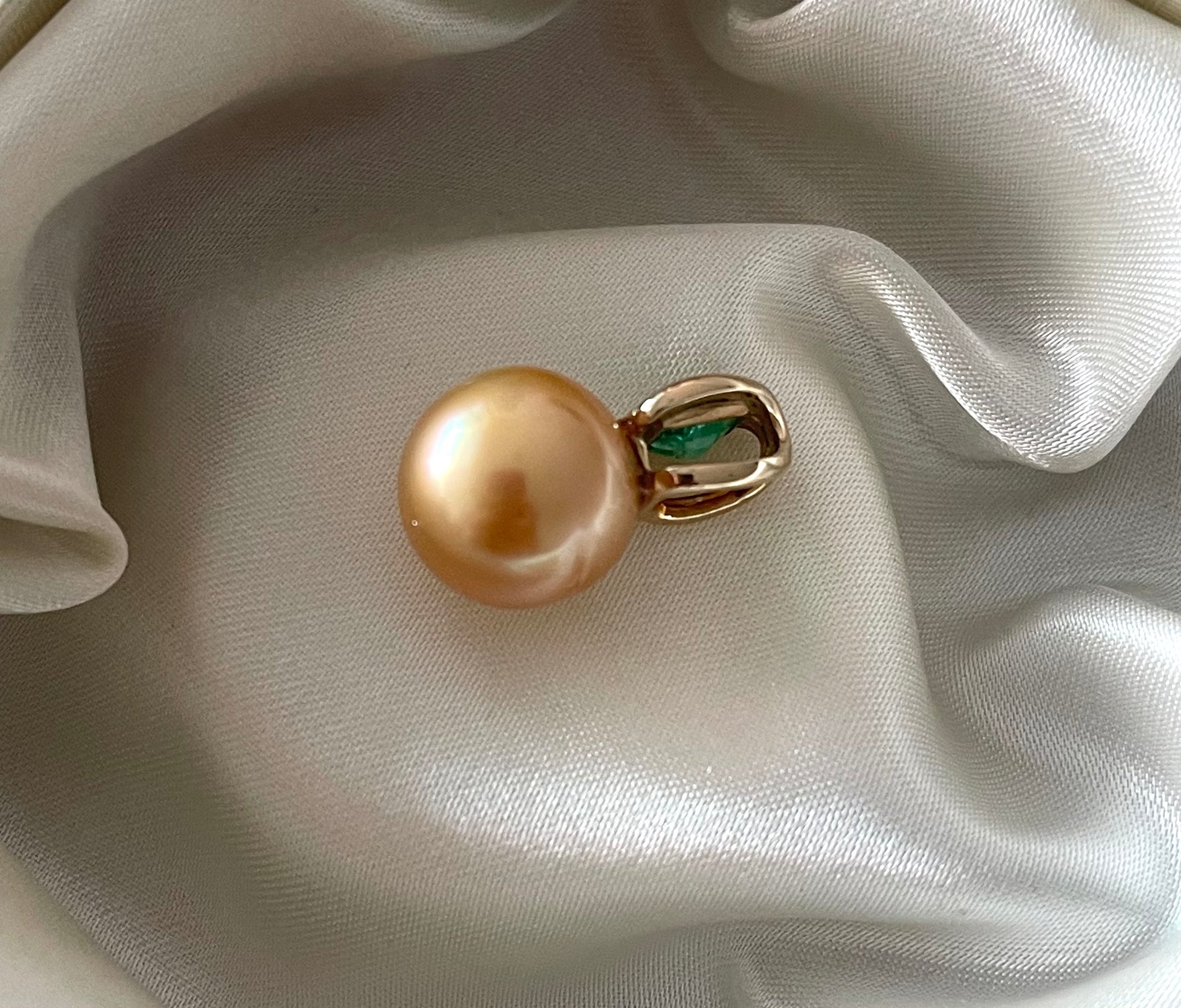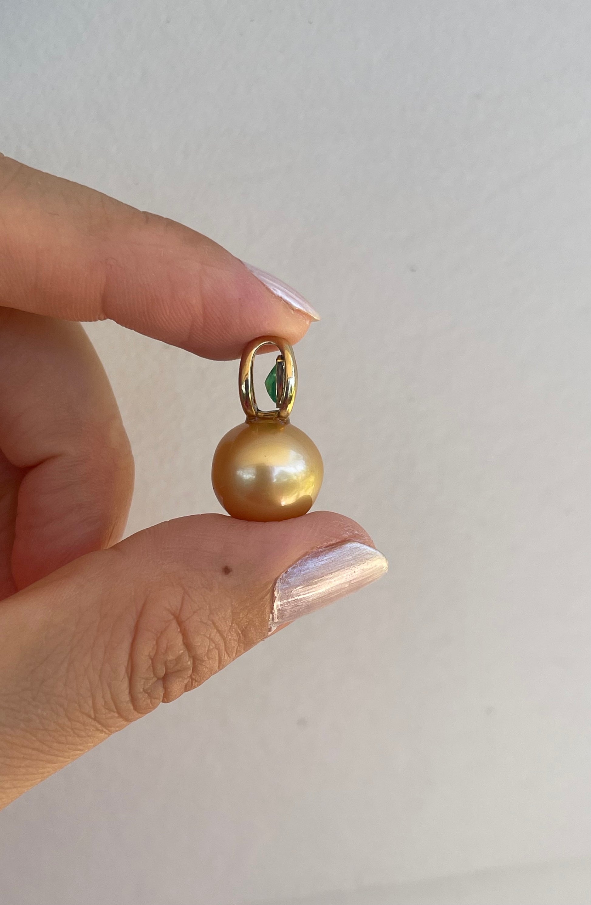9ct yellow gold genuine golden south sea pearl pendant with natural emerald