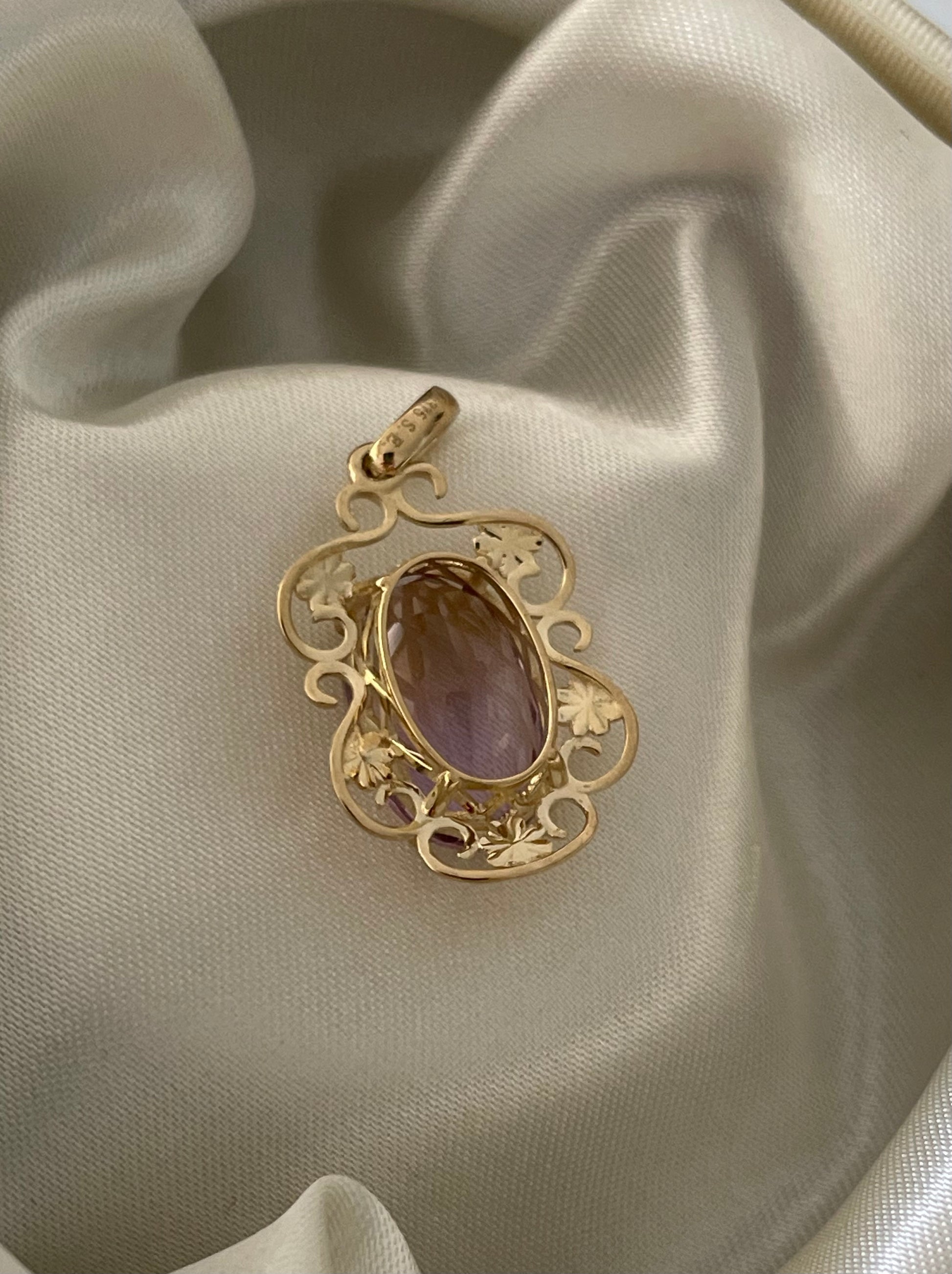 Antique style 9ct yellow gold 6.75ct natural ametrine flower pendant