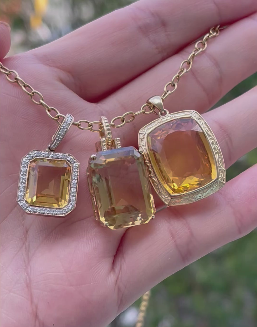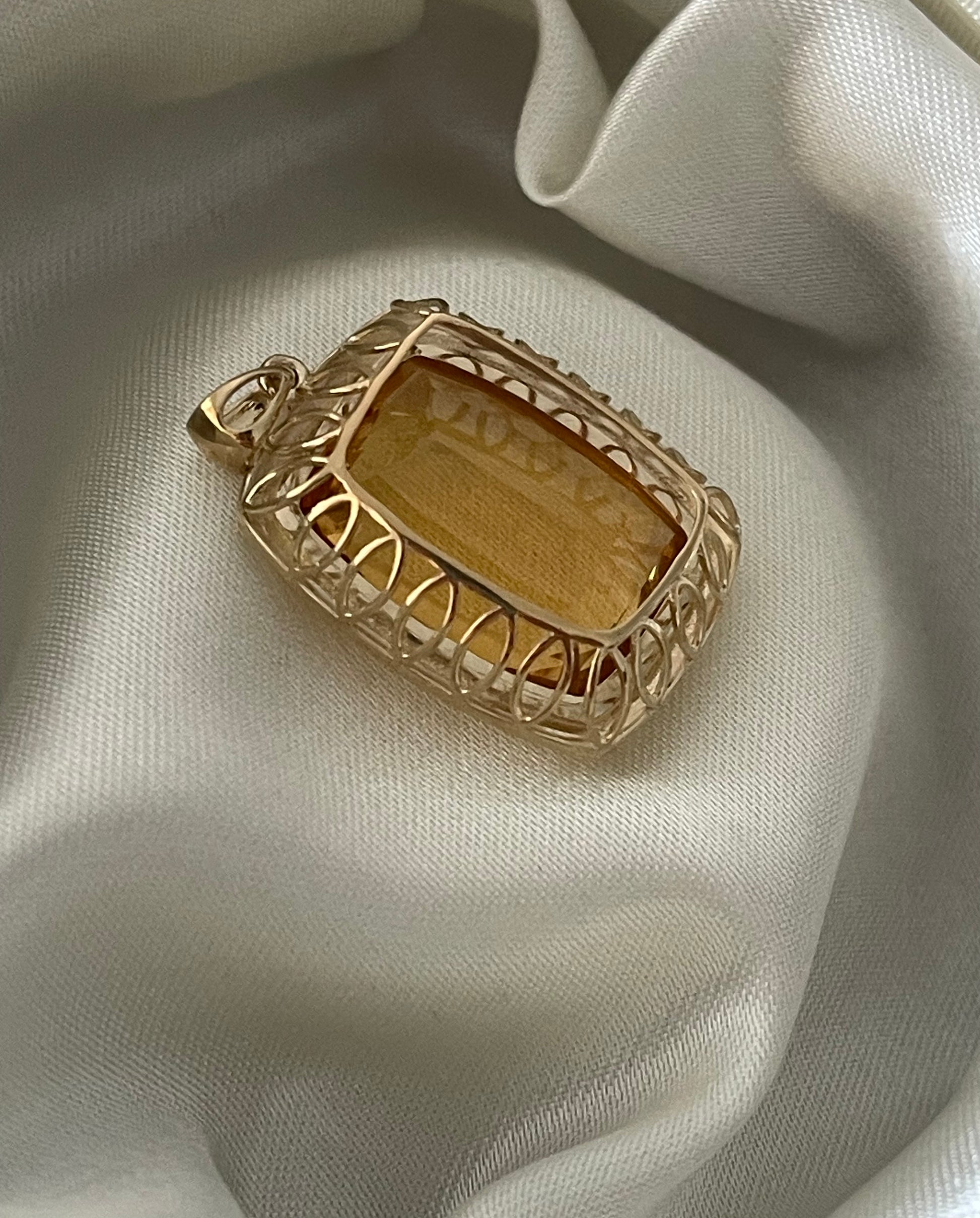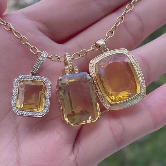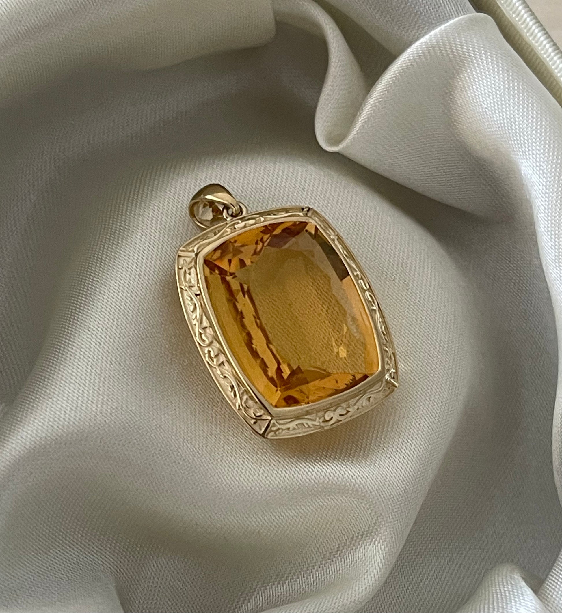 Antique style 9ct yellow gold large 15.3ct natural orange citrine pendant