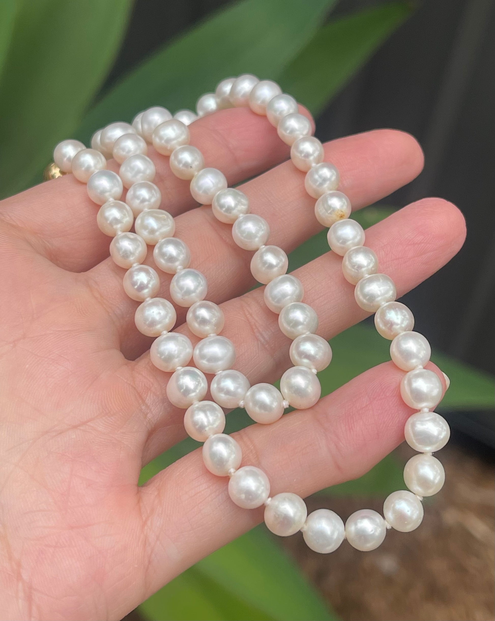 Lovely strand of genuine freshwater pearls creamy color with 14ct yellow gold ball clasp . I see similar ones cost $999