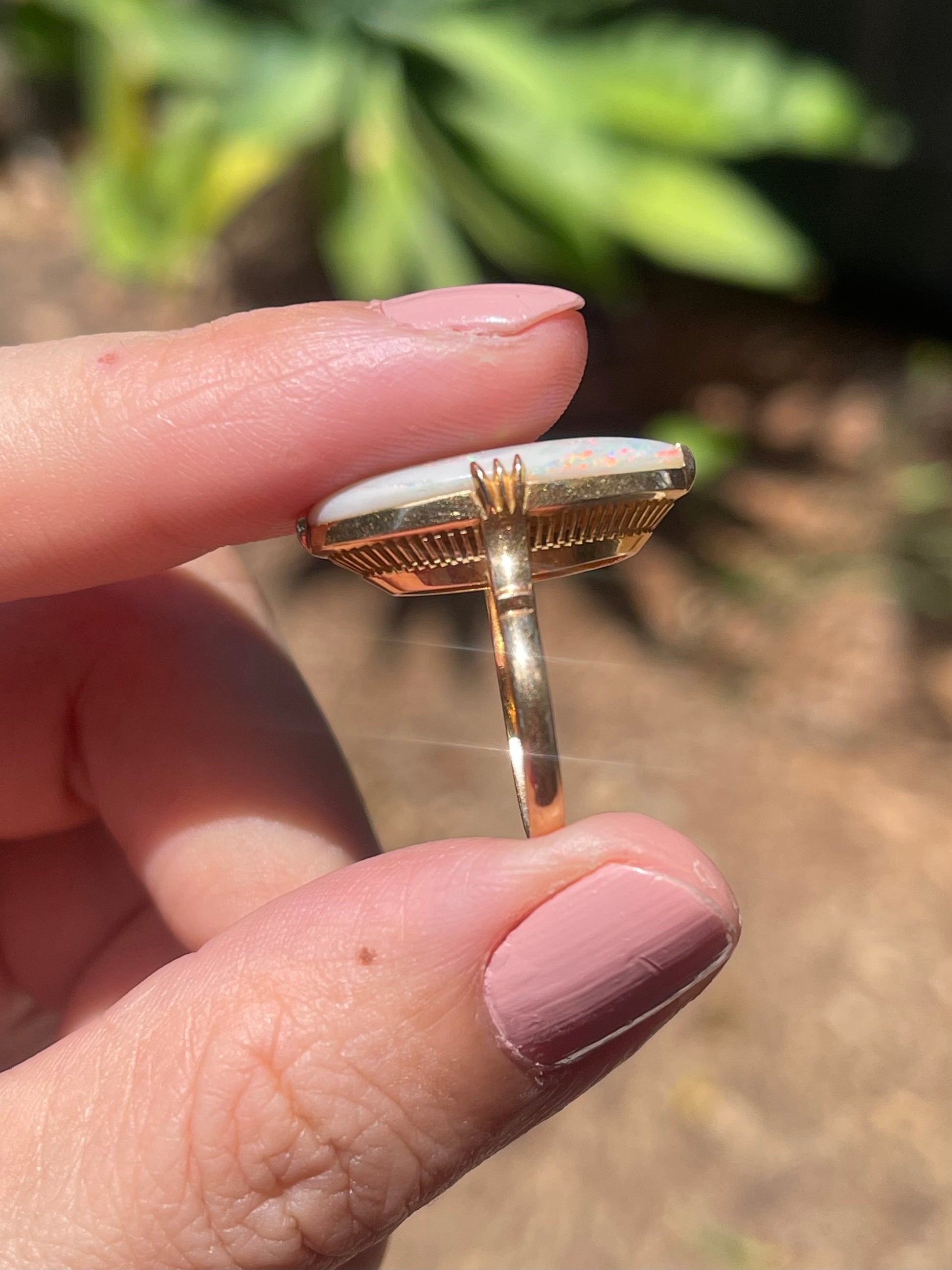 Vintage 18ct yellow gold natural solid Australian opal ring